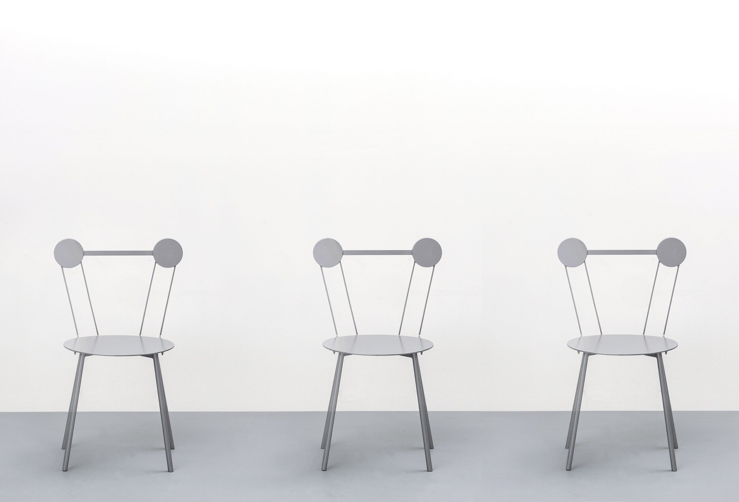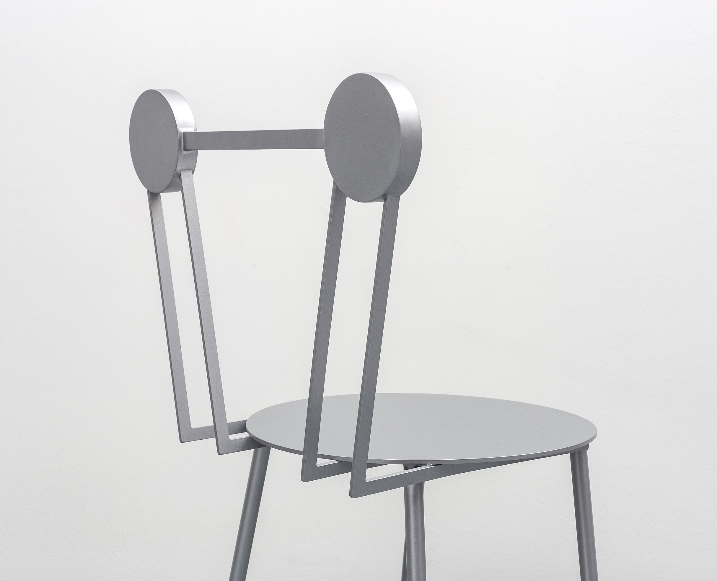 The Haly chair has a bold attitude and a delicate profile. It was designed through the combination of different methods of metal working and an extended research on treatments and finishes of aluminium surfaces.