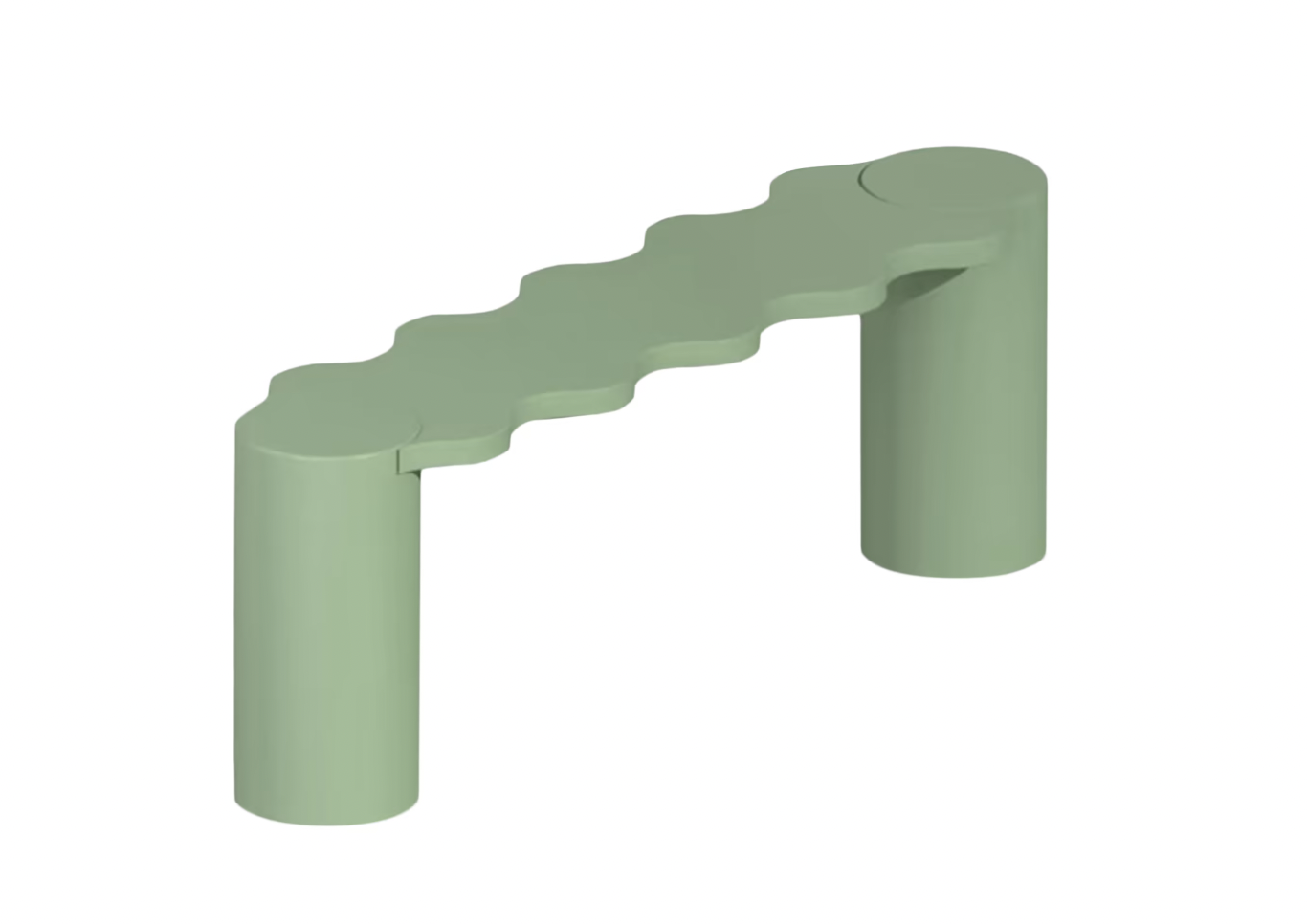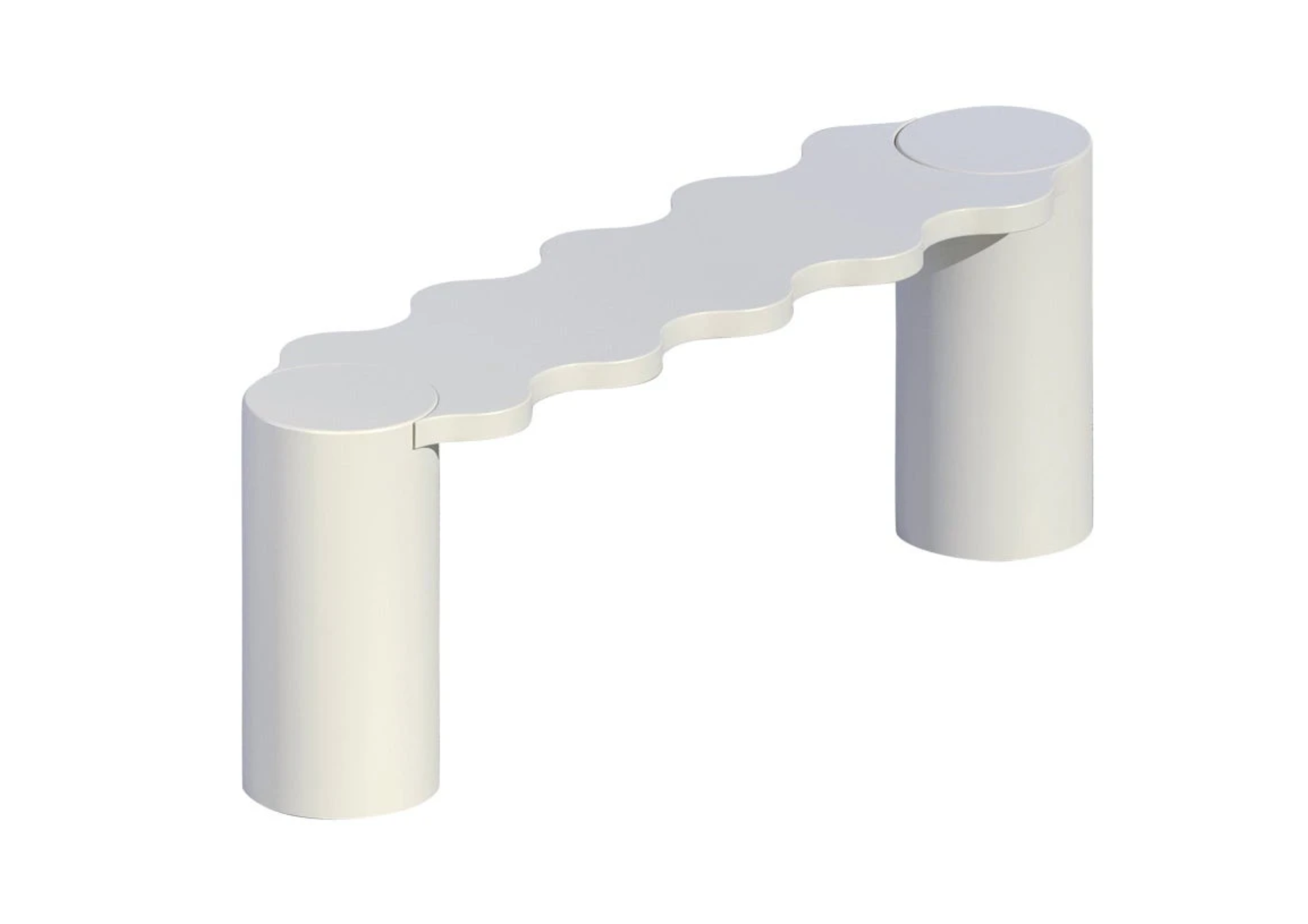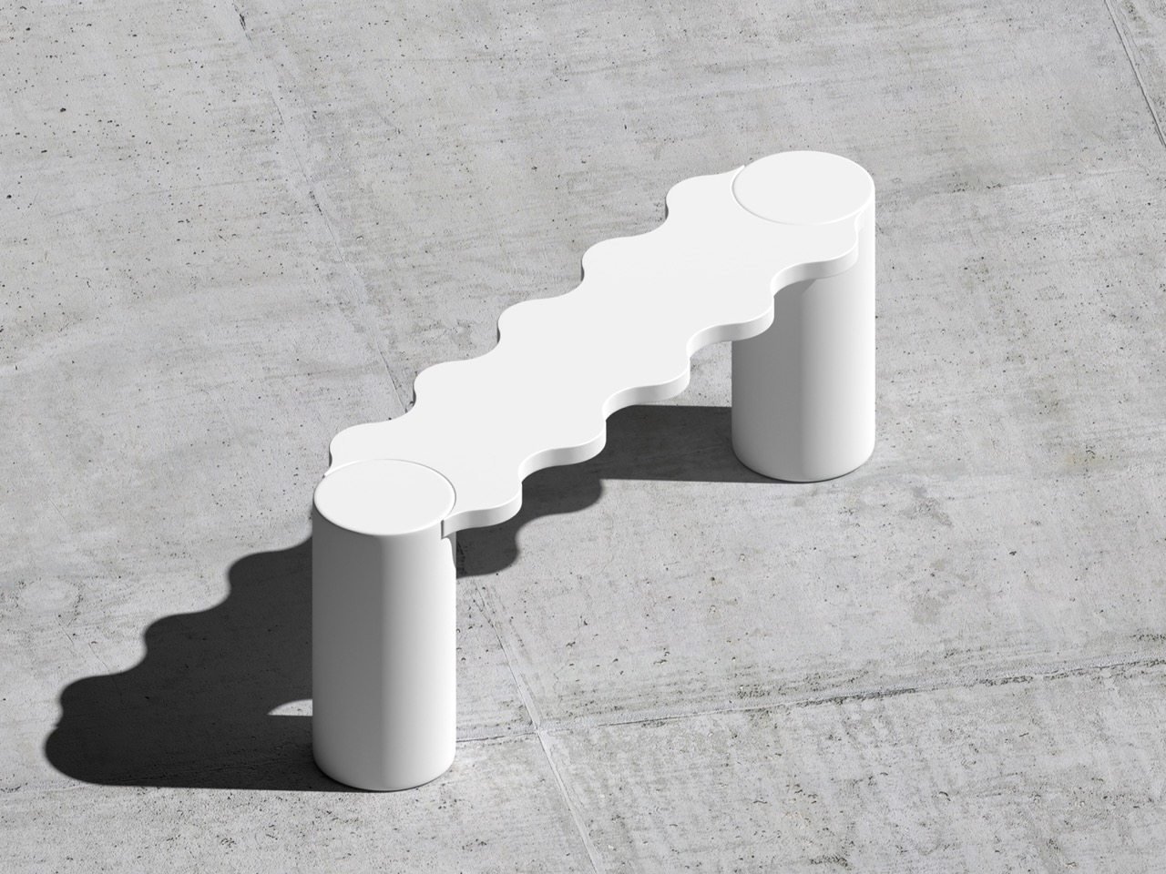 Hella Matte is a bench characterised by its sculpture like curved shapes and creamy opaque finish. The metal structure is formed by two cylindrical supports marked off with a wave silhouette seating.