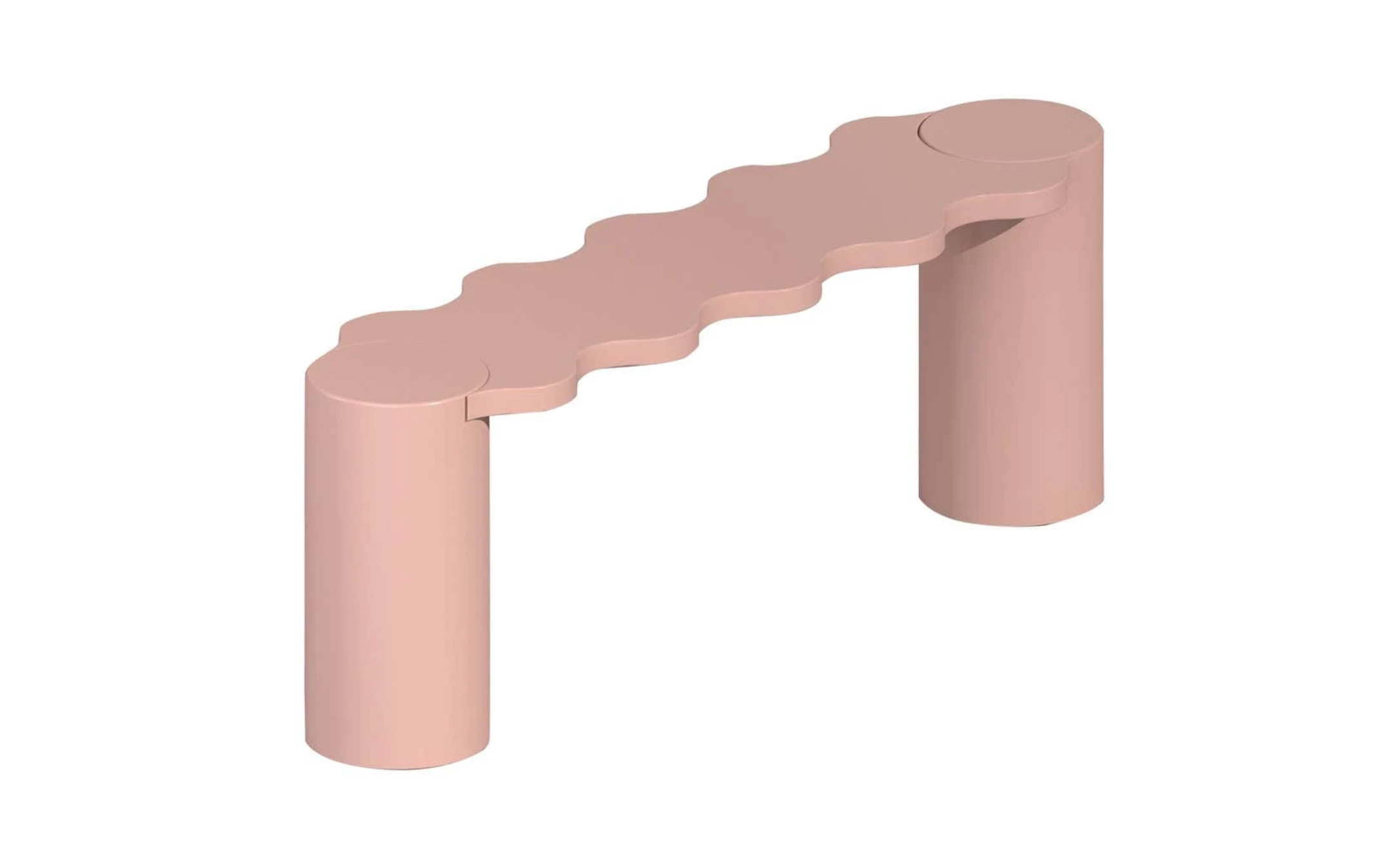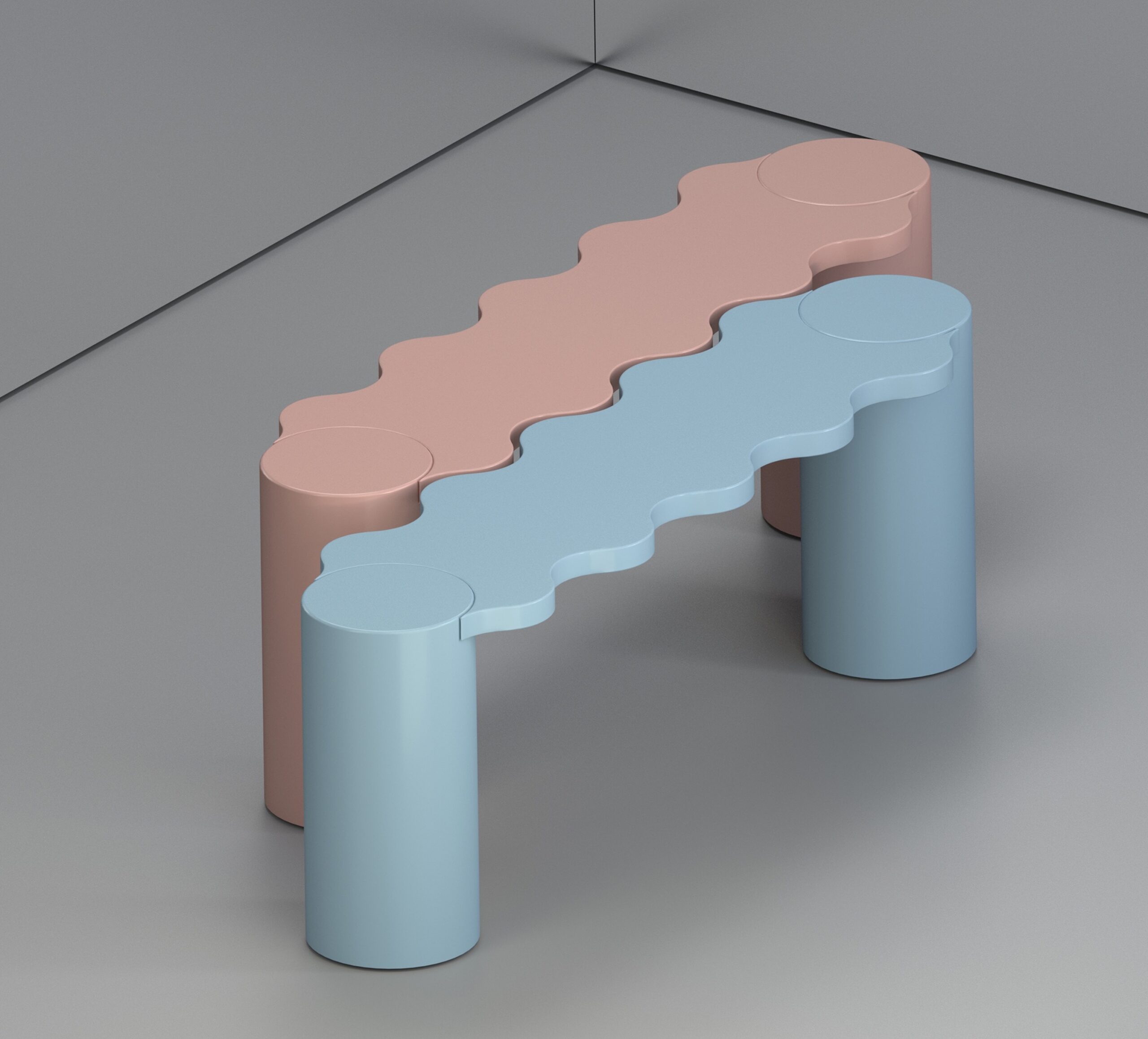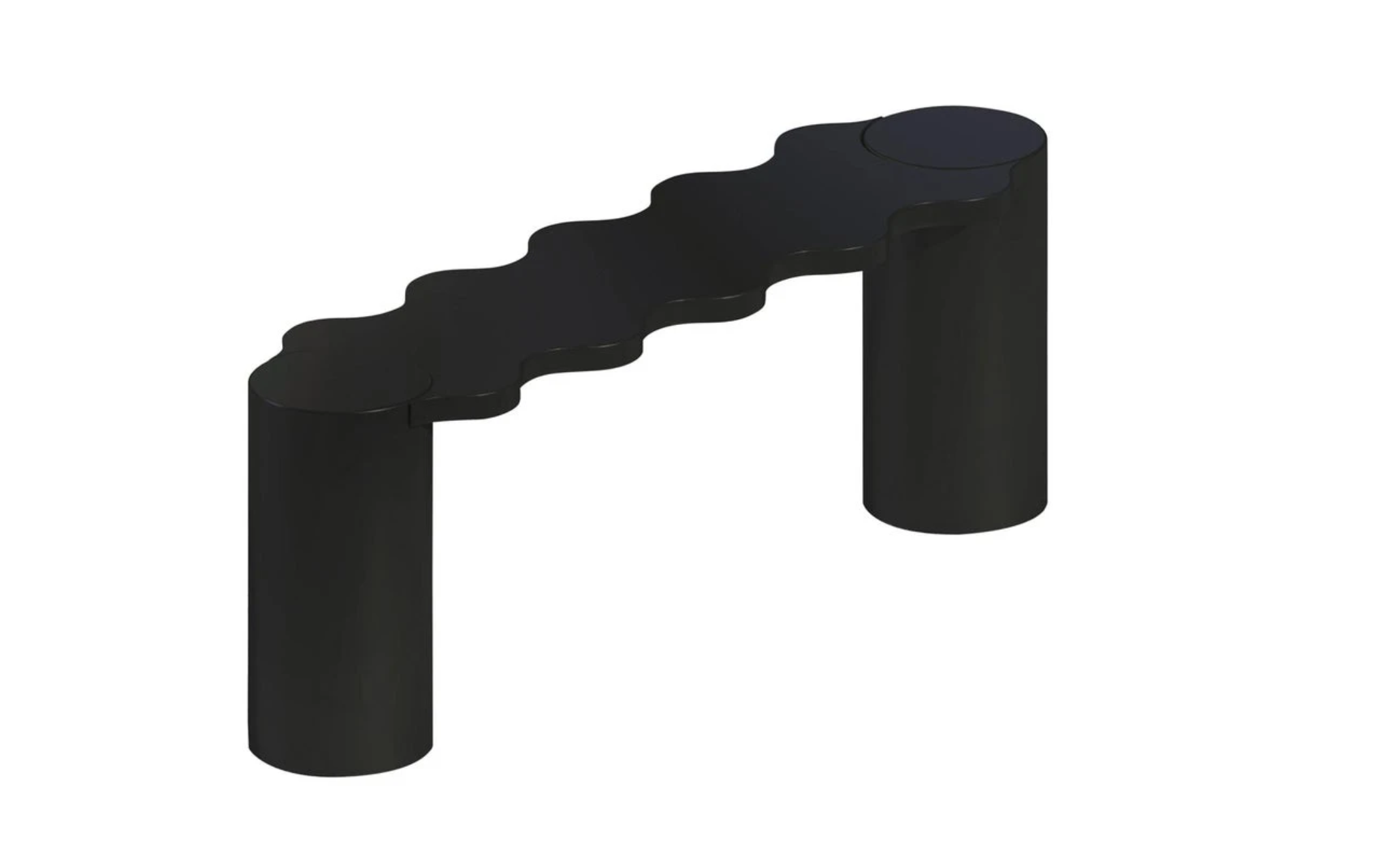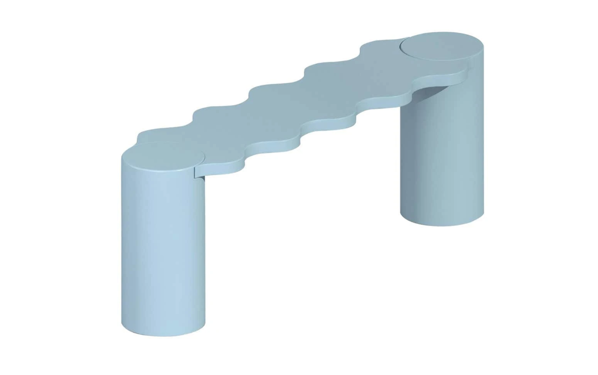 Hella Matte is a bench characterised by its sculpture like curved shapes and creamy opaque finish. The metal structure is formed by two cylindrical supports marked off with a wave silhouette seating.