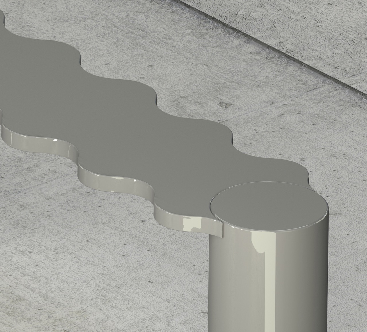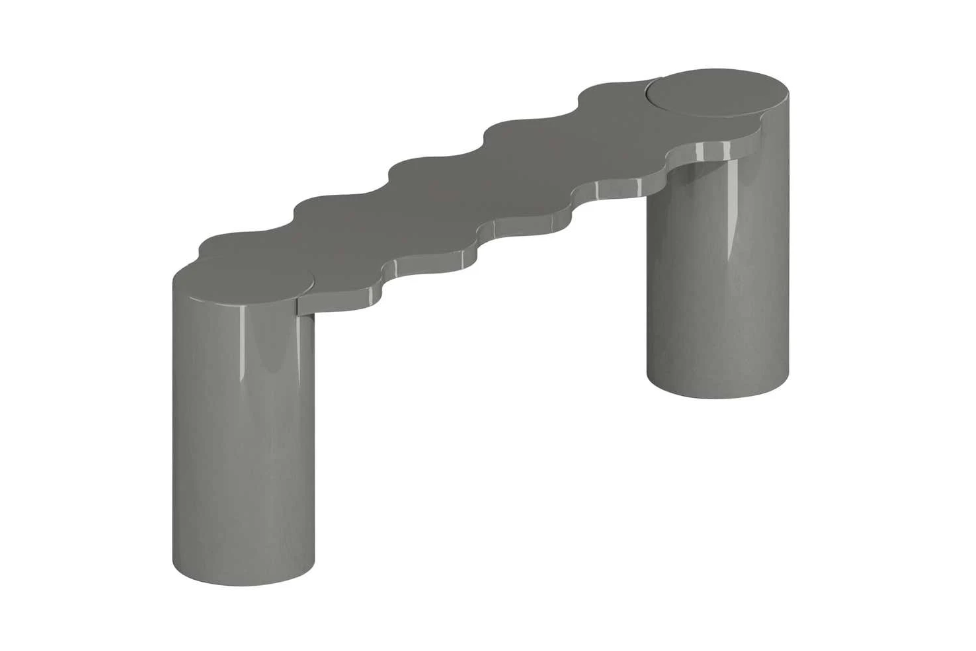 Hella Varnish is a bench characterised by its sculpture like curved shapes and glossy grey finish. The metal structure is formed by two cylindrical supports marked off with a wave silhouette seating.